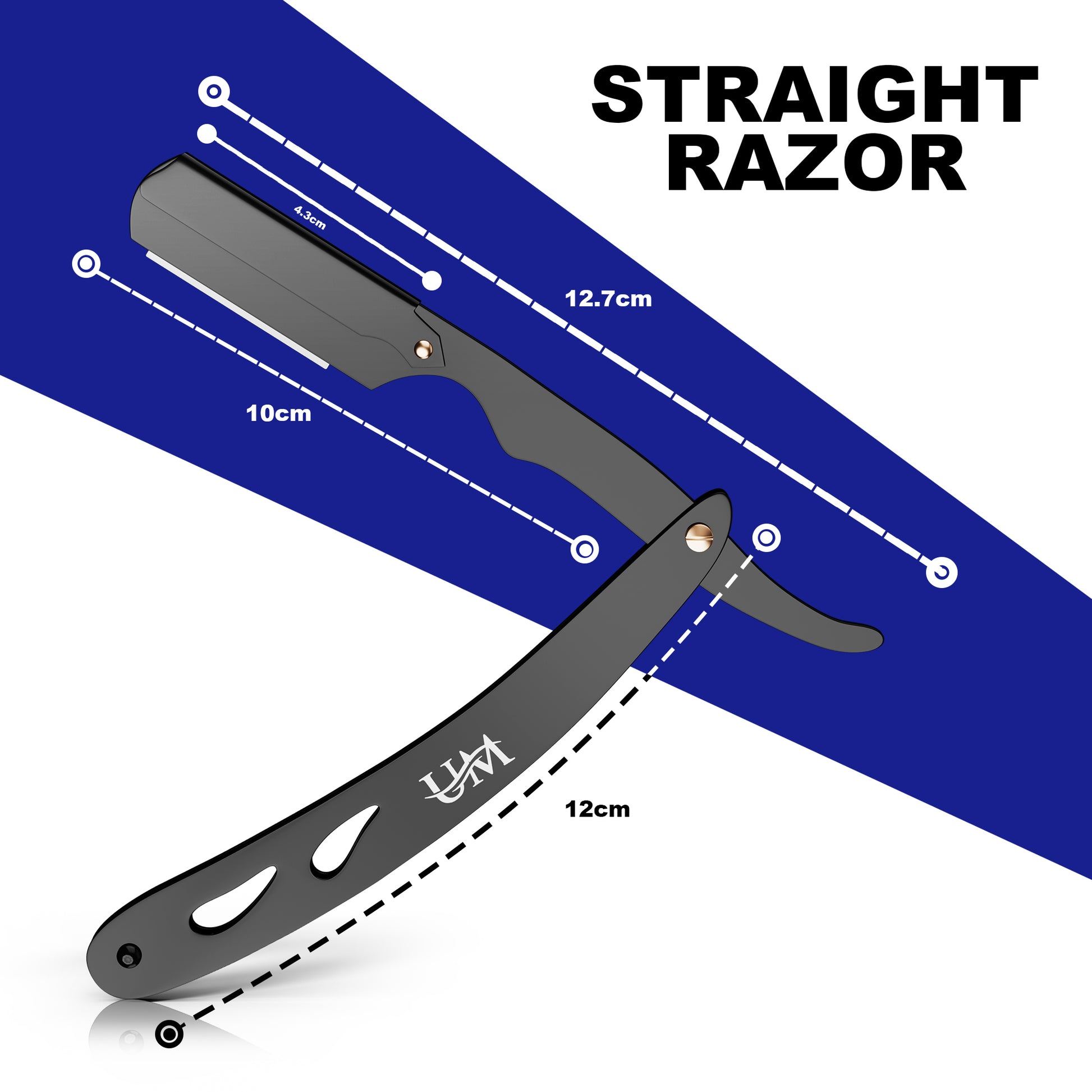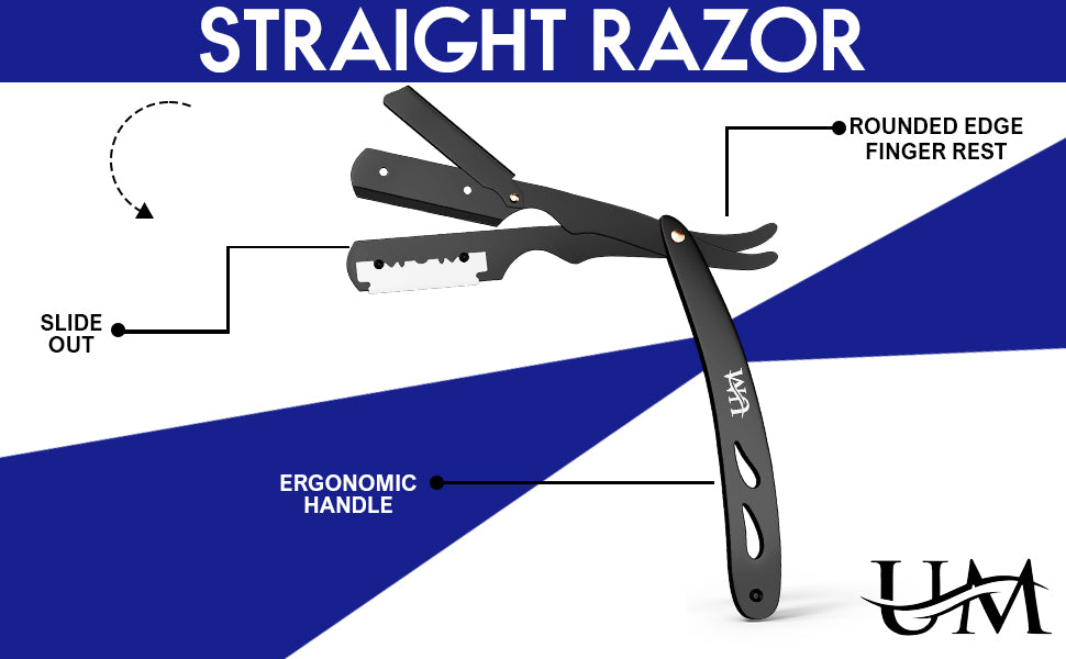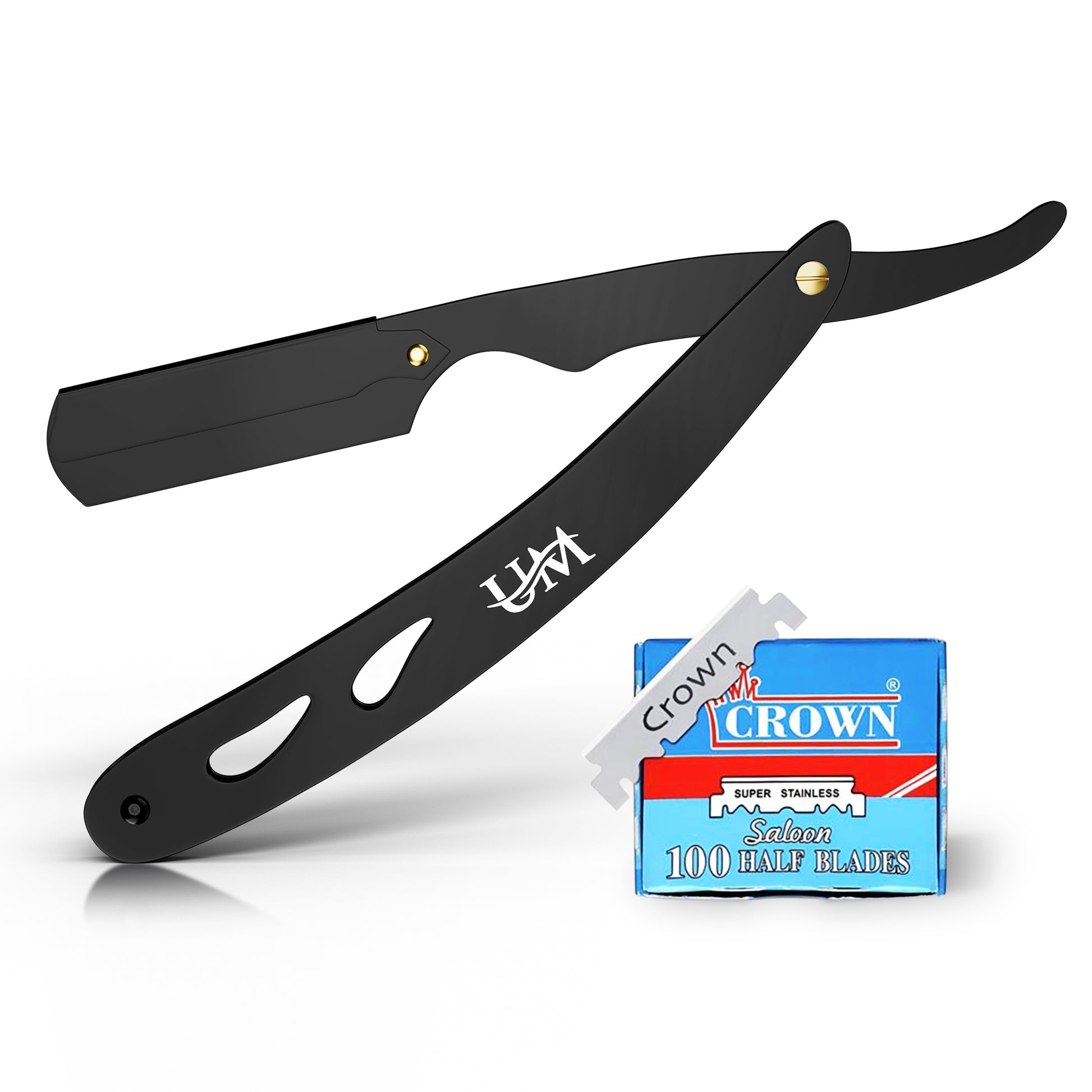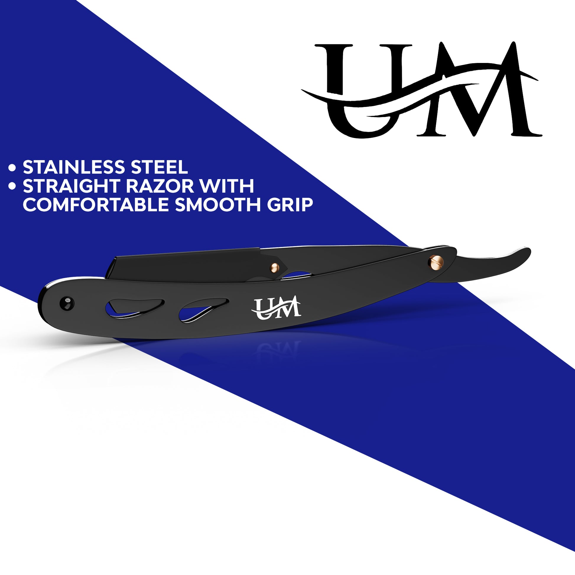 UM Supplies straight blade razor comes with 100 Pack straight blade made with black handle and premium quality stainless steel finish that has been specifically designed to resist rust with complete corrosion resistance. .